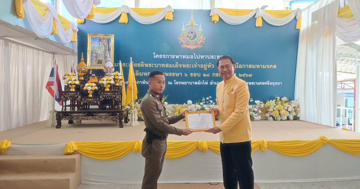 สำนักงานสาธารณสุข จ.พระนครศรีอยุธยา จัดทำโครงการ “พาหมอไปหาประชาชน” เฉลิมพระเกียรติพระบาทสมเด็จพระเจ้าอยู่หัว เนื่องในโอกาสมหามงคลเฉลิมพระชนมพรรษา 6 รอบ ณ โรงพยาบาลผักไห่ อ.ผักไห่ โดยมี นายวิชาญ มีนชัยนันท์ ที่ปรึกษารัฐมนตรีว่าการกระทรวงสาธารณสุข เป็นประธานในพิธี พร้อมด้วย นายนิวัฒน์ รุ่งสาคร ผู้ว่าราชการ จ.พระนครศรีอยุธยา, นายแพทย์ยุทธนา วรรณโพธิ์กลาง สาธารณสุข จ.พระนครศรีอยุธยา, น.ส.รฌทร สงวนพงศ์ นายอำเภอผักไห่, พ.ต.อ.ดุษฎี หิรัญรัตน์ ผกก.สภ.ผักไห่, พ.ต.ท.กรกฤต ภูติยา สวป.สภ.ผักไห่ พร้อมกำลังเจ้าหน้าที่ตำรวจ สภ.ผักไห่ ,หัวหน้าส่วนราชการ ผู้บริหารองค์กรปกครองส่วนท้องถิ่น กำนัน ผู้ใหญ่บ้าน ร่วมโครงการฯ มีประชาชนเข้าร่วมบริการเพื่อตรวจรักษา จำนวนประมาณ 1,800 คน