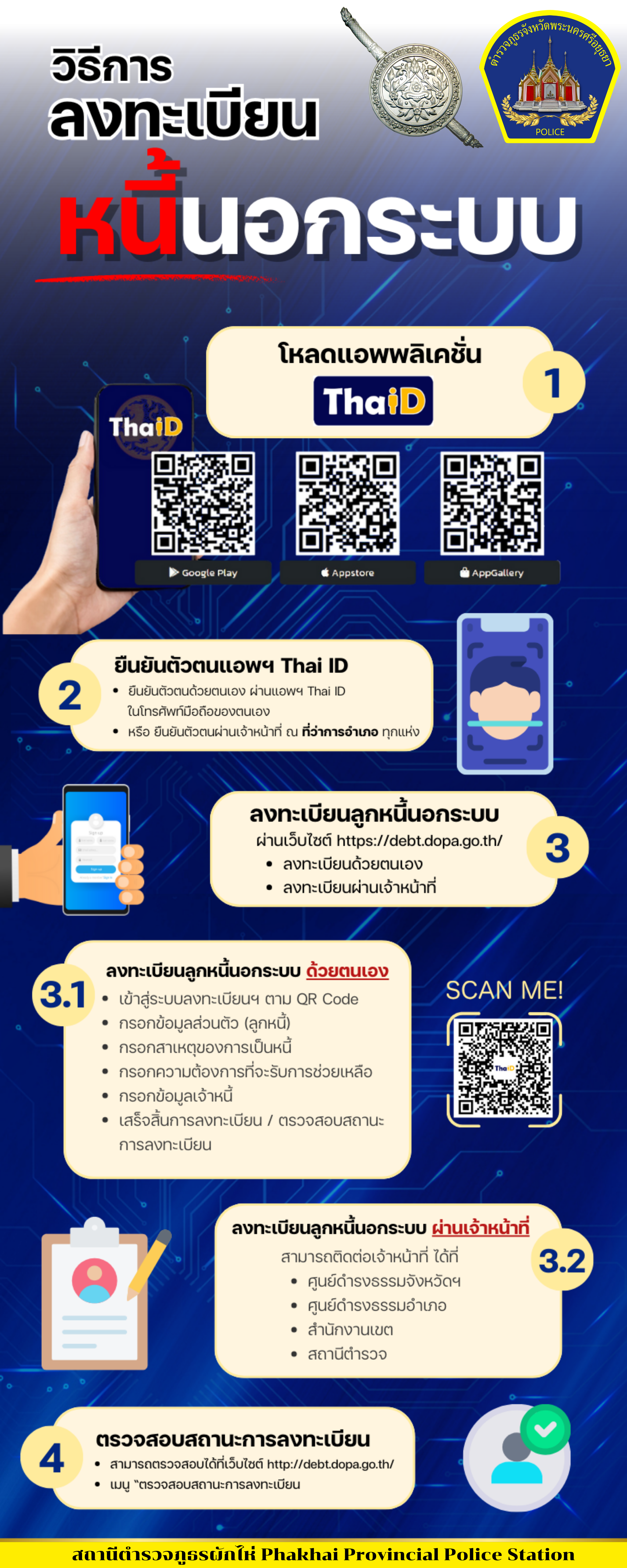 สถานีตำรวจภูธรผักไห่ จึงขอเชิญชวนประชาชนที่มีปัญหาหนี้นอกระบบ และได้รับความเดือนร้อนจากกรณีดังกล่าว