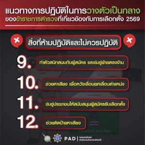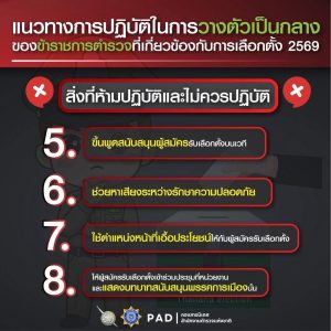 พ.ต.อ.ศุภกร อ้นสุวรรณ์ ผกก.สภ.ผักไห่ ประชุมชี้แจง ข้าราชการตำรวจ สภ.ผักไห่ เรื่อง การวางตัวเป็นกลางของตำรวจกับการเลือกตั้ง 2569 โดยให้ข้าราชการตำรวจทุกนายวางตัวเป็นกลาง เช่น รักษาความปลอดภัยผู้สมัครรับเลือกตั้ง หรือผู้เกี่ยวข้องกับการเลือกตั้ง (ตามคำสั่ง ตร.38/2548) ให้ความร่วมมือช่วยเหลือ สนับสนุนและไปใช้สิทธิเลือกตั้ง นอกจากนี้ให้ผู้บังคับบัญชาสอดส่องผู้ใต้บังคับบัญชาให้วางตัวเป็นกลางทางการเมืองทั้งนี้สิ่งที่ห้ามปฏิบัติและไม่ควรปฏิบัติ คือ การใช้อำนาจหน้าที่ช่วยเหลือผู้สมัคร, การให้ผู้สมัครเข้าร่วมประชุมที่หน่วยงาน ทั้งทางตรง และทางอ้อม, ห้ามทำตัวสนิทสนมหรือข่มขู่ฝั่งตรงข้าม, ห้ามแสดงตัวเป็นผู้มีอิทธิพลสนิทสนม, ห้ามช่วยหาเสียงให้นักการเมือง, ห้ามข่มขู่ประชาชนให้สนับสนุนผู้สมัคร, ห้ามช่วยหาเสียงหรือติดตามนักการเมือง